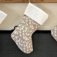 Inspirada en los paisajes invernales, esta bota navideña beige con diseño de ciervos blancos aporta un toque rústico y elegante a tu decoración.