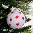 🎅 Esfera Red Snowflake 10 cm – Blanco Nevado con Copos Rojos