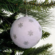La Esfera Silver Snowflake 10 cm evoca la serenidad de una nevada invernal con su acabado aterciopelado blanco y copos plateados en glitter que brillan con sutileza entre las luces del árbol. Un diseño que combina lo clásico con lo contemporáneo, aportando un aire fresco y sereno a tu decoración navideña.
