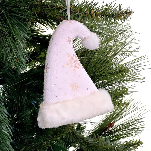 Dale un aire mágico y sofisticado a tu árbol con este adorno en forma de gorro navideño 🤍