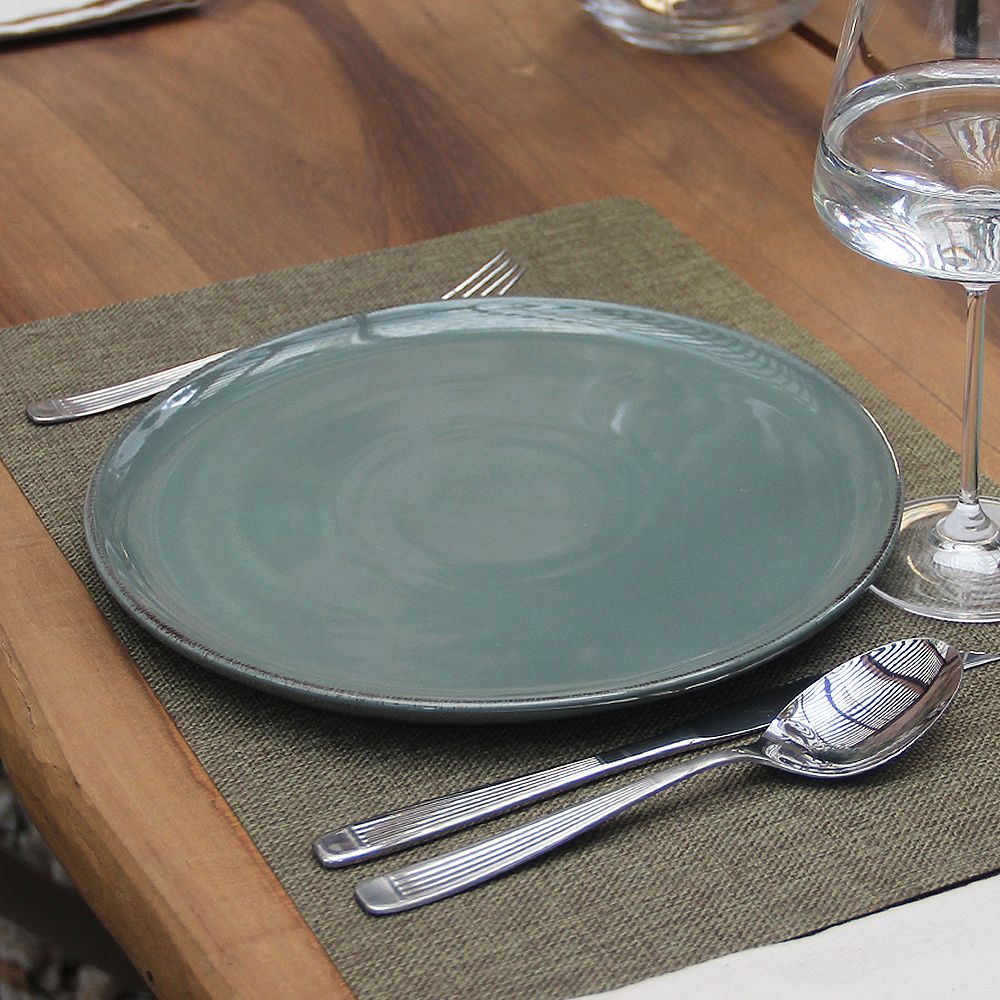 Su tono verde con borde terracota le da un aire natural y relajado, perfecto tanto para el día a día como para cenas especiales.