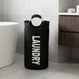 • Color negro con inscripción “LAUNDRY” en blanco, estilo urbano y minimalista.