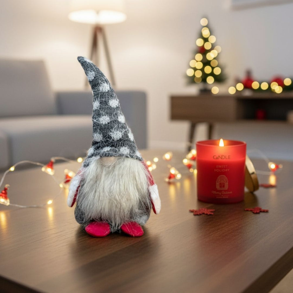 🎅🏼 Gnomo Navideño Gris con Gorro Tejido – 22 cm de encanto invernal ❄️