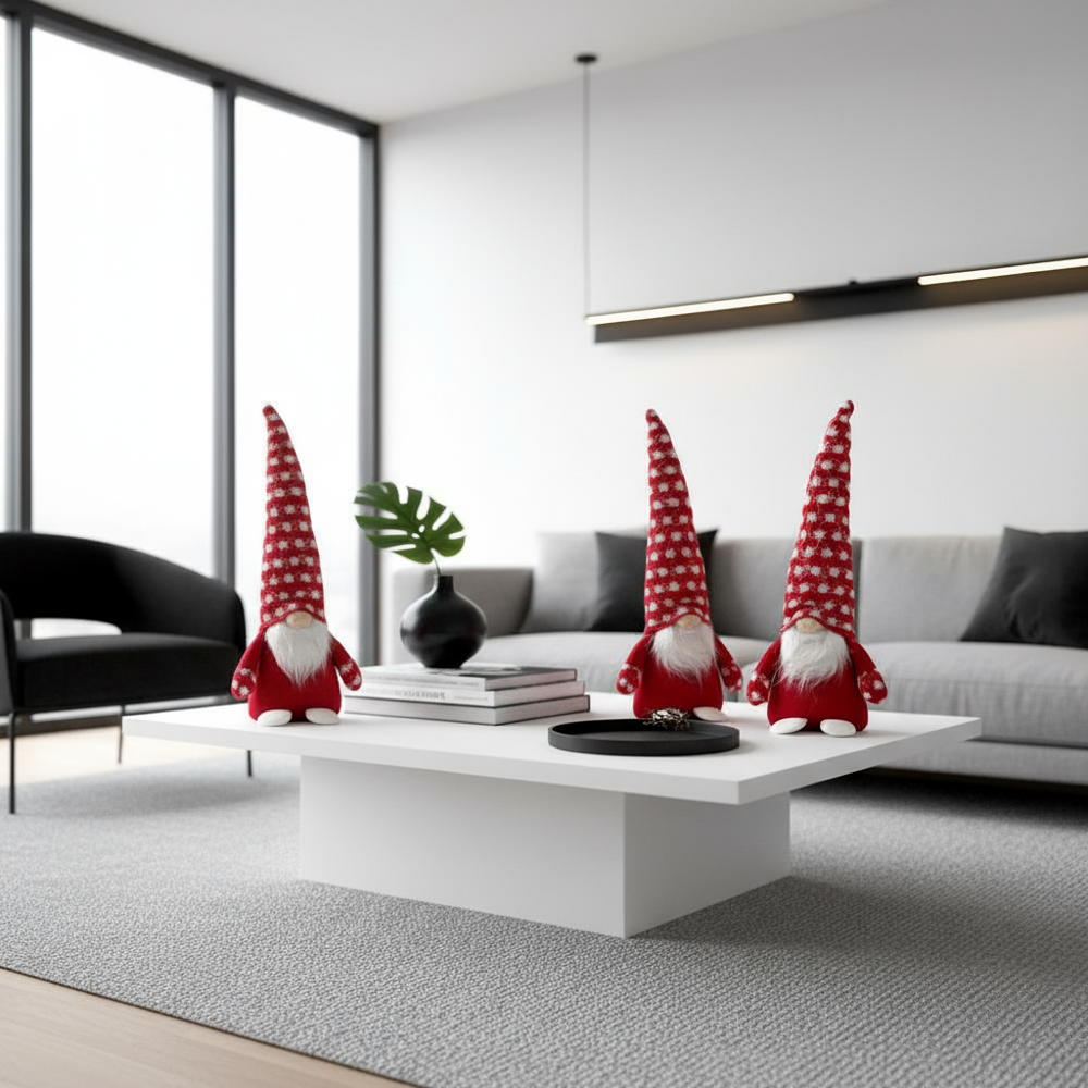 Suaves, simpáticos y llenos de espíritu festivo, estos pequeños personajes con su sombrero puntiagudo rojo con detalles blancos y barba blanca esponjosa se convierten en el toque perfecto para mesas, estanterías o al pie del árbol.