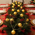 Las esferas doradas reflejan la luz con un brillo cálido y delicado que crea un ambiente sofisticado.