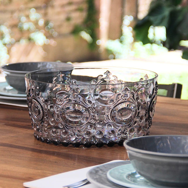 La Ensaladera Acrílico Imperial Smoky es la protagonista ideal para lucir en tu mesa. Su acabado gris ahumado y el relieve estilo imperial la convierten en una pieza elegante y práctica a la vez, perfecta para realzar tanto comidas cotidianas como encuentros especiales.