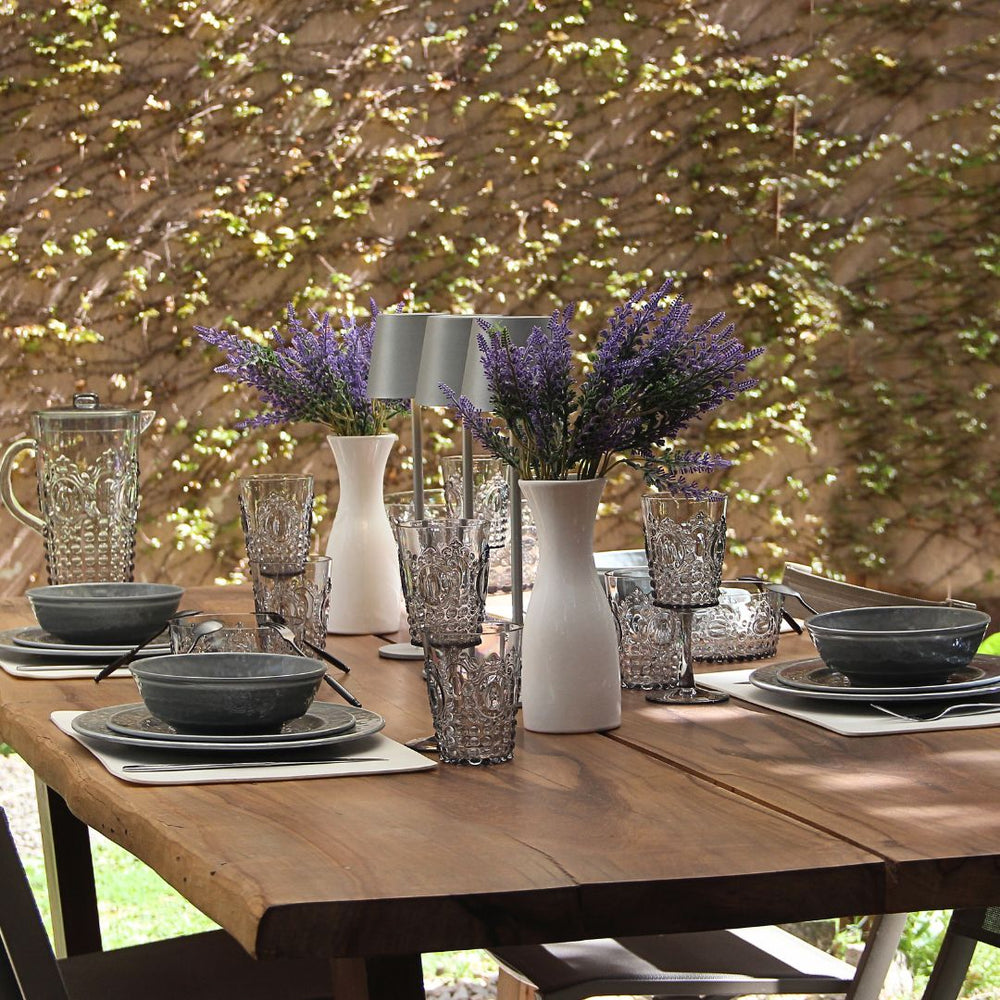 Este pack incluye una jarra, 4 vasos y una ensaladera de la línea Imperial Smoky, diseñada con relieves inspirados en la Flor de Lis y un delicado acabado gris ahumado que aporta un efecto sofisticado y contemporáneo a tu mesa.