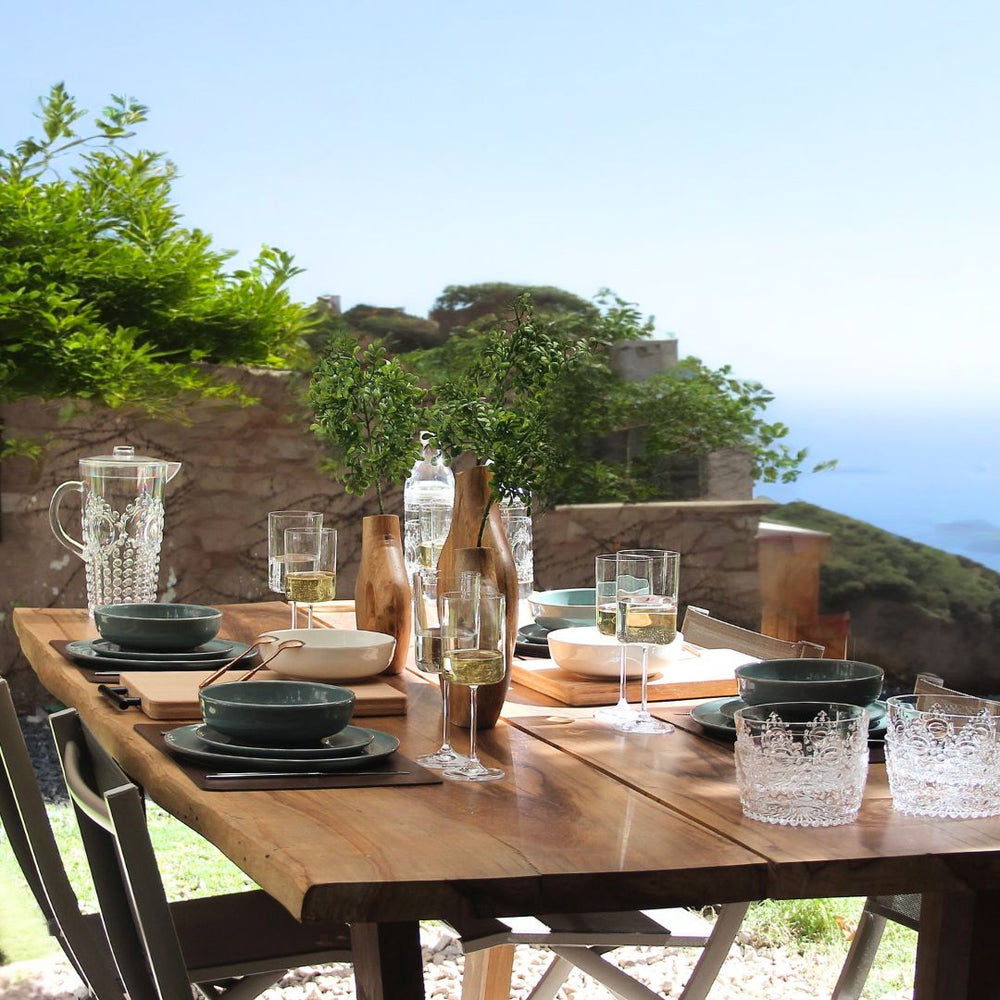 Su tono verde con borde terracota le da un aire natural y relajado, perfecto tanto para el día a día como para cenas especiales.