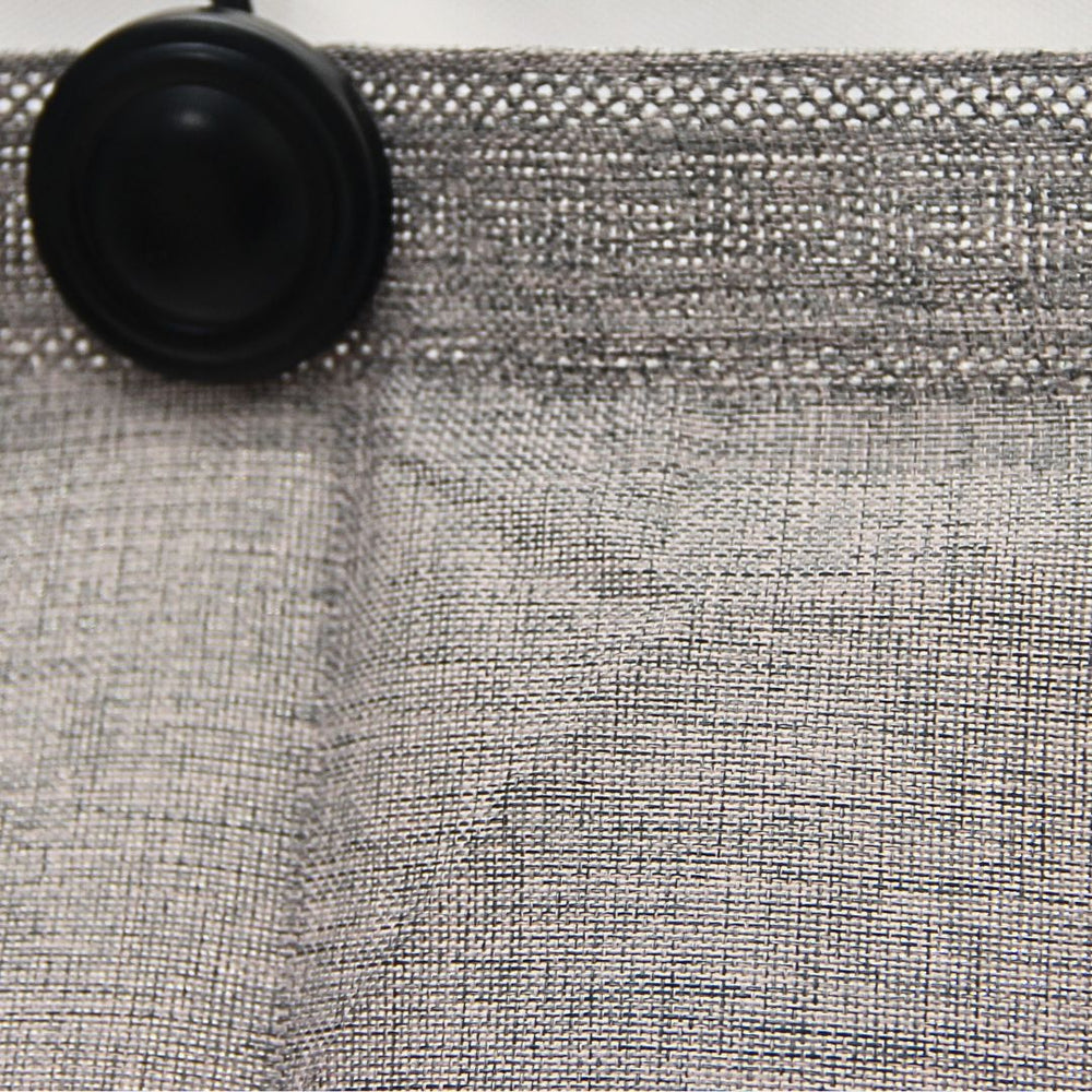 El tejido simil lino brinda textura y calidez visual, mientras que su material resistente mantiene la cortina impecable frente al vapor y la humedad diaria. Su tono gris oscuro permite crear contrastes armónicos con cerámicas claras o accesorios metálicos, logrando un look equilibrado y elegante.