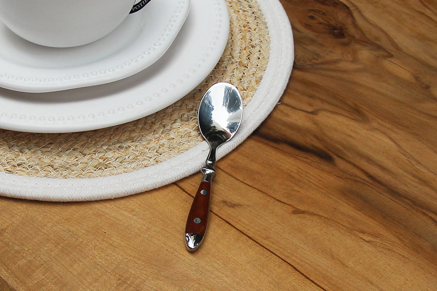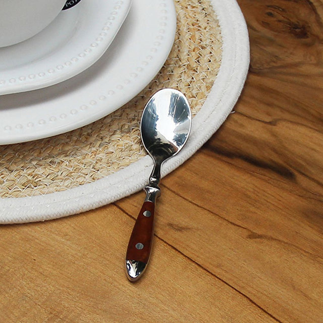 Pequeña pero con mucho estilo 🍵✨. Ideal para endulzar tus infusiones, postres y momentos especiales. Su mango en baquelita imitación madera aporta calidez y un toque rústico, mientras que su acero inoxidable garantiza resistencia y brillo duradero.