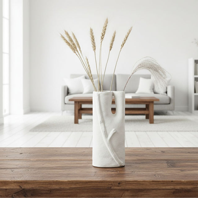 Un florero que combina minimalismo nórdico con un toque bohemio y natural, ideal para darle personalidad a cualquier espacio de tu hogar.