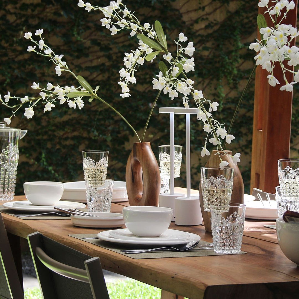 La línea Clásica tiene contornos suaves, proporciones equilibradas y un brillo sutil que la convierte en un verdadero comodín para el día a día o para mesas más armadas.
