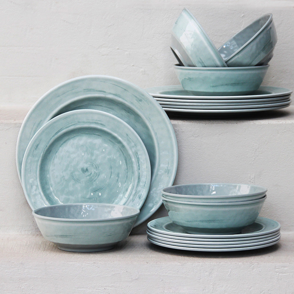 Juego de Vajilla de Melamina Verde Aqua – 18 Piezas (6 Playos + 6 Postres + 6 Hondos)