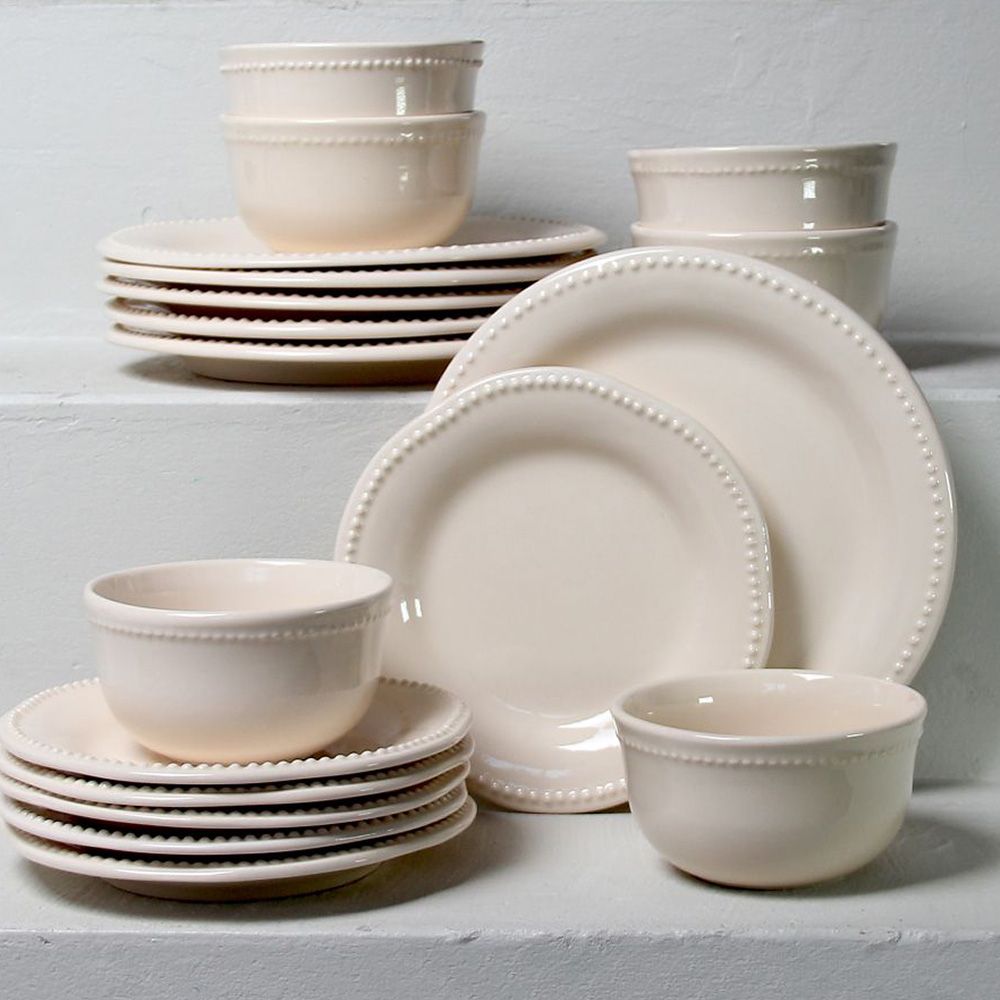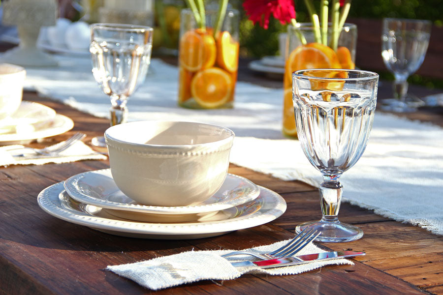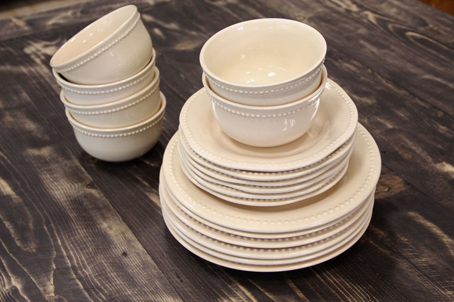 El delicado borde con perlas en relieve y el tono crema suave hacen de esta vajilla una opción cálida, sofisticada y muy combinable.