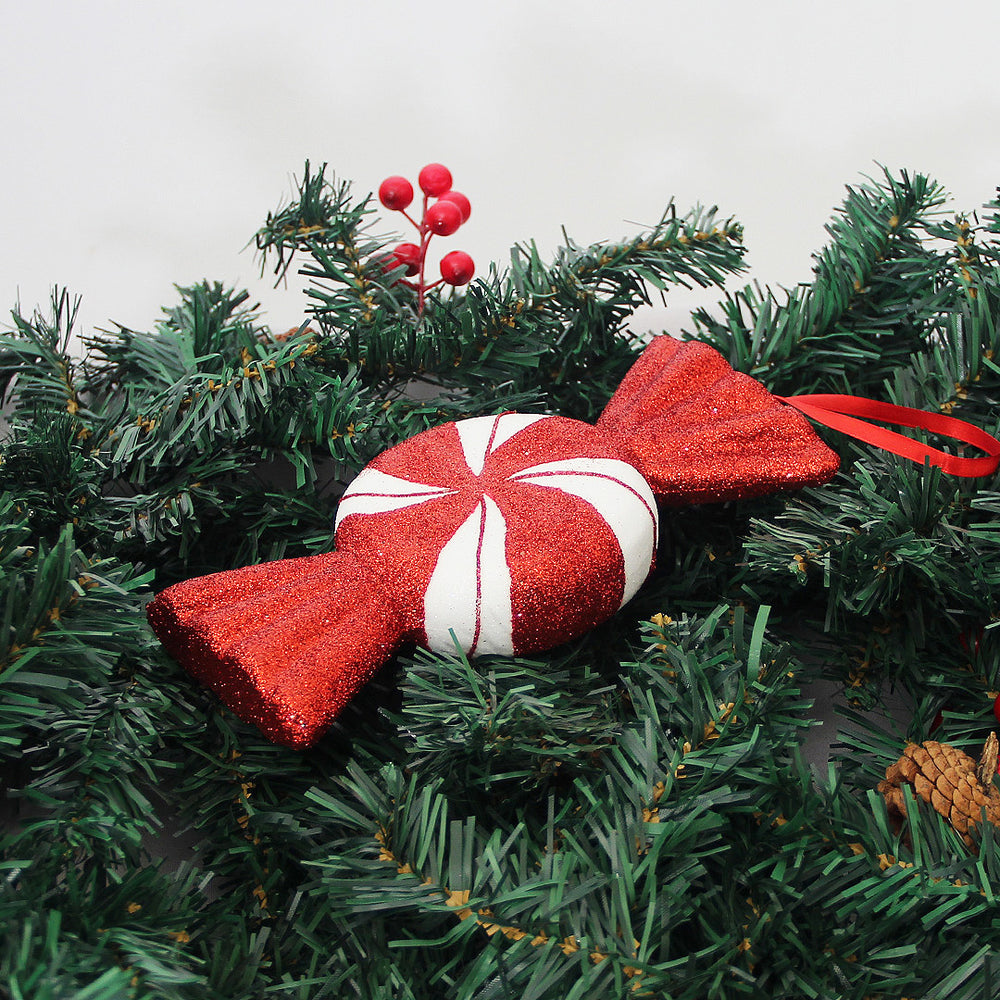 El Candy Joy Red combina el brillo del glitter rojo con la suavidad del blanco aterciopelado, creando un contraste que evoca los caramelos tradicionales de Navidad. Ideal para sumar calidez, color y alegría a tu árbol o decoración de mesa.