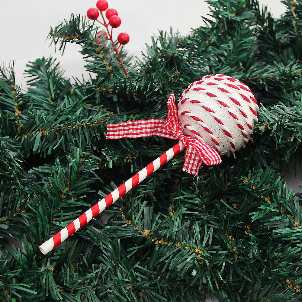 Este adorno tipo lollipop combina el espíritu festivo con una estética delicada y encantadora. Su diseño blanco con detalles rojos y lazo vichy crea una pieza alegre y versátil que ilumina cualquier decoración navideña.