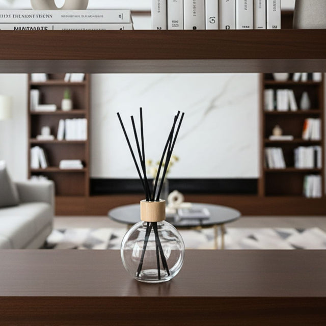 El Frasco Globe Clear 200 ml destaca por su forma redondeada y su tapa de madera, combinando transparencia, diseño y funcionalidad en una sola pieza. Su tamaño mediano lo hace ideal para difusores de varillas, fragancias o aceites esenciales, aportando un toque de elegancia a cualquier espacio del hogar.