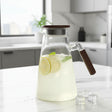 Su estructura robusta y elegante permite servir desde agua, limonadas o jugos con frutas hasta té o café frío, manteniendo siempre la frescura y el sabor. El asa ergonómica de madera brinda un agarre cómodo y seguro, ideal para uso diario o para acompañar reuniones con un toque distintivo.