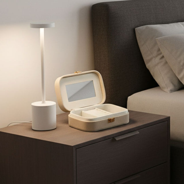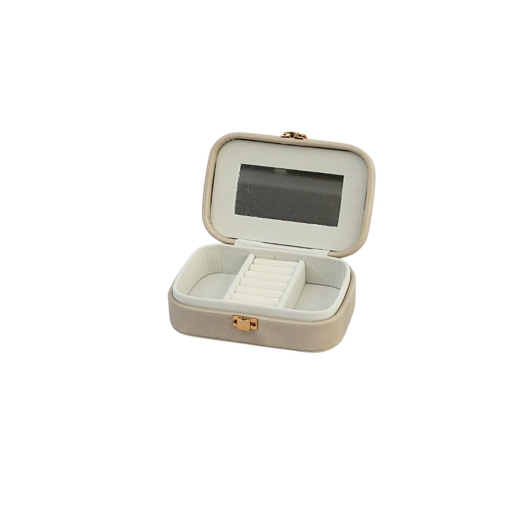 Con su diseño moderno y su espejo integrado, este alhajero permite organizar y probar tus accesorios de manera cómoda. Compacto y práctico, es perfecto tanto para el hogar como para llevar en viajes, manteniendo siempre tus piezas seguras y ordenadas.