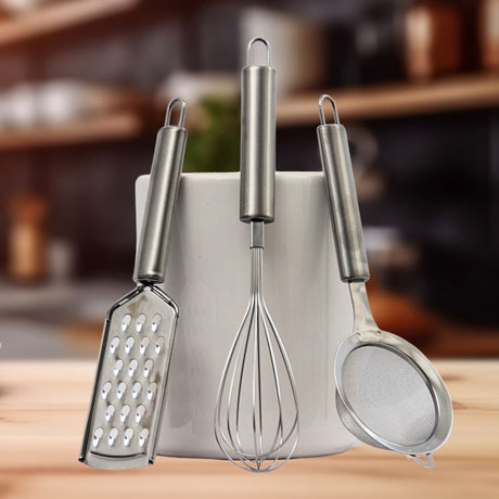 6 cuotas sin interes de $3.586Pack 3 Utensilios Acero/Rallador/Batidor/Colador