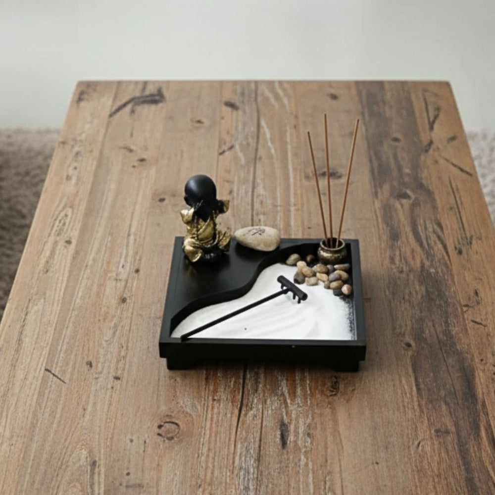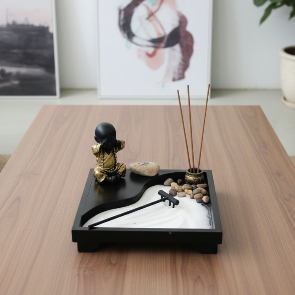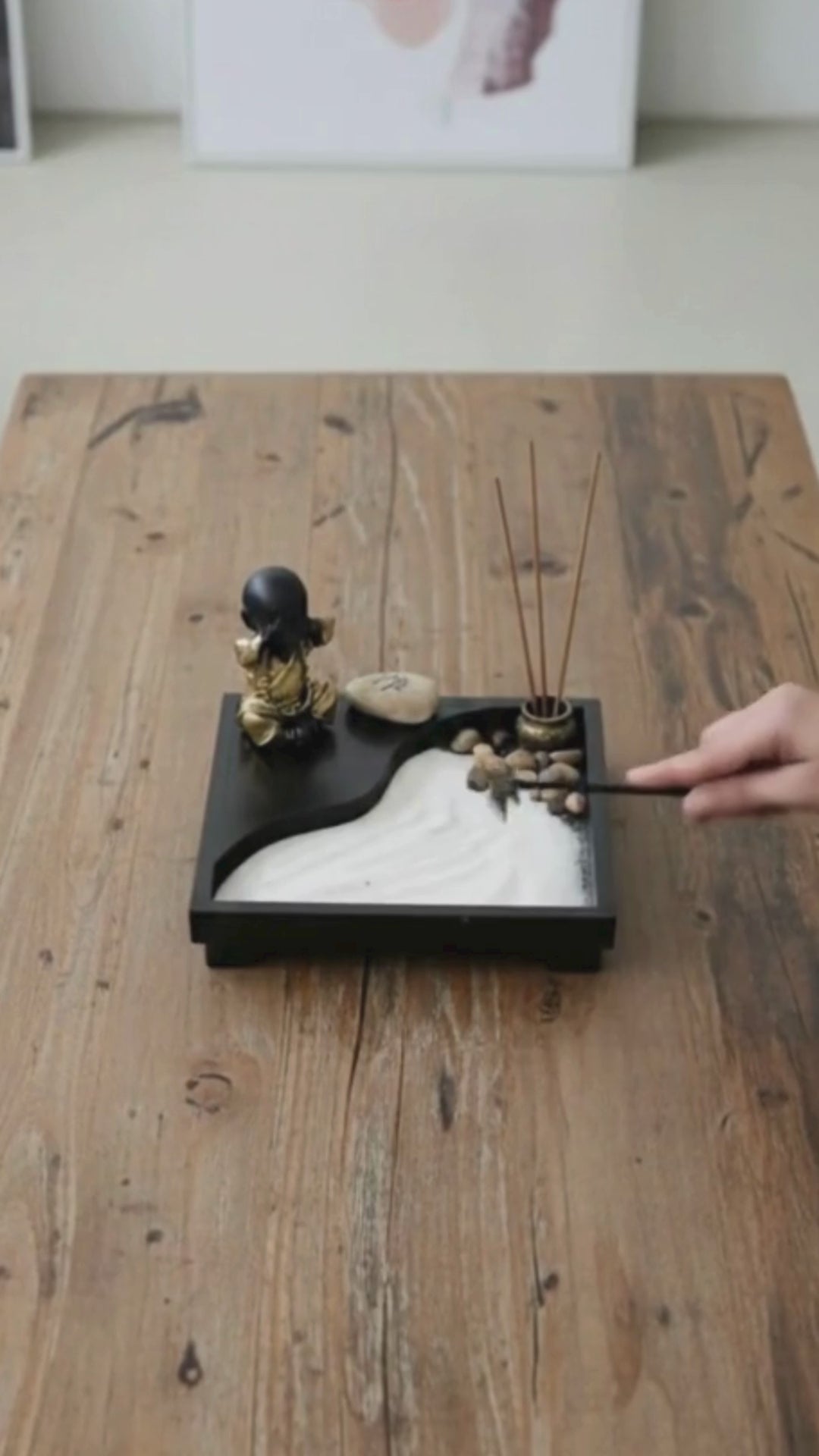 - 🪶 Incluye: Buda “No Ver”, base decorativa, arena blanca, piedras naturales y porta incienso.