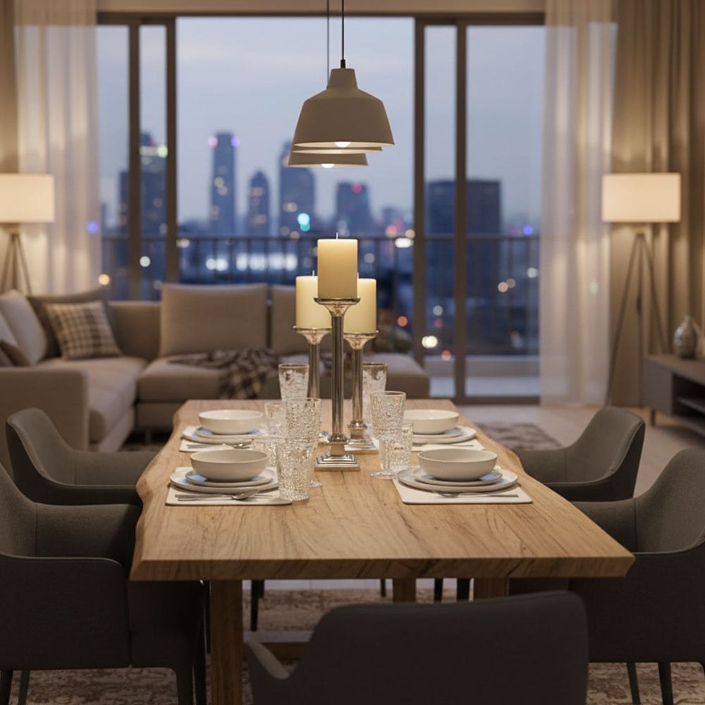 Fabricado en metal con acabado en níquel brillante, refleja la luz con un destello sutil que realza la atmósfera, perfecto para cenas formales, celebraciones o como elemento decorativo permanente.