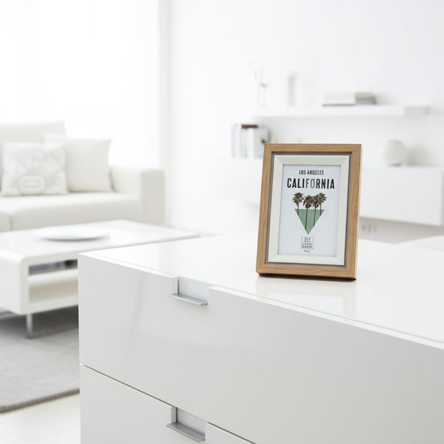 El Portarretratos California – 10x15 cm aporta un estilo moderno, fresco y minimalista, ideal para quienes buscan un toque urbano en su decoración. Su marco box en madera clara resalta la lámina interior con palmeras y tipografía contemporánea, evocando la vibra relajada y cosmopolita de Los Ángeles.