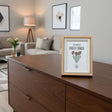 • Diseño: marco box de madera clara con ilustración estilo California vibes