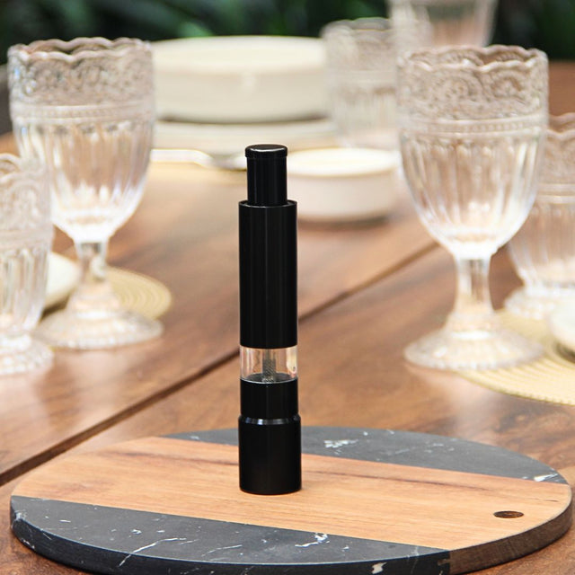 El Molinillo a Presión Black está pensado para quienes disfrutan del sabor recién molido, pero sin complicaciones. Con solo presionar la parte superior, lográs una molienda rápida y uniforme de sal, pimienta o especias, ideal para realzar el sabor de tus platos al instante.