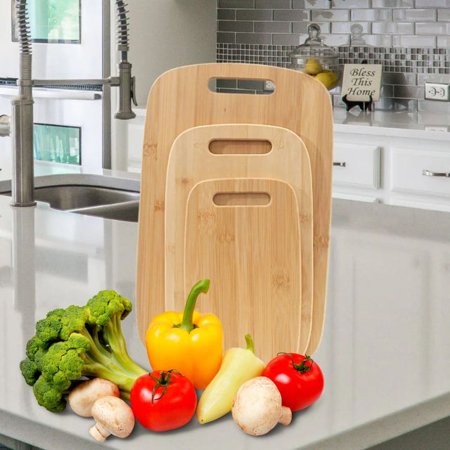 🍅 Este set de tablas de bambú combina funcionalidad y estilo para tu cocina 🥦. Resistentes, ligeras y perfectas para cortar, picar y servir alimentos 🍽️.