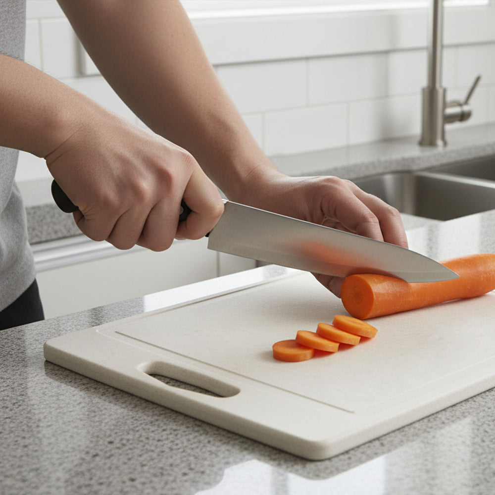 La Tabla de Corte  36,5 × 26 cm combina estética natural y resistencia profesional. Ofrece una superficie segura, duradera y libre de poros que no absorbe líquidos ni olores.