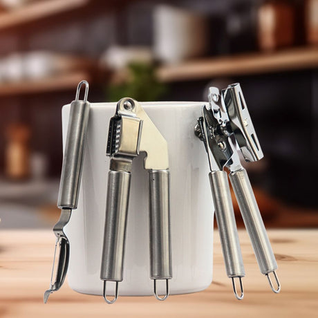 12 cuotas sin interes de $1.625Pack 3 Utensilios Acero/Pelador Papas/Prensa Ajo/Abrelatas