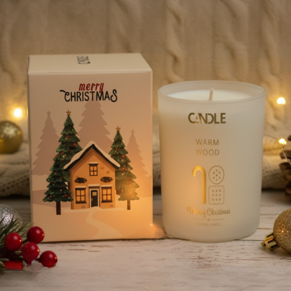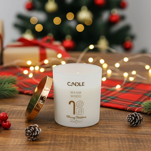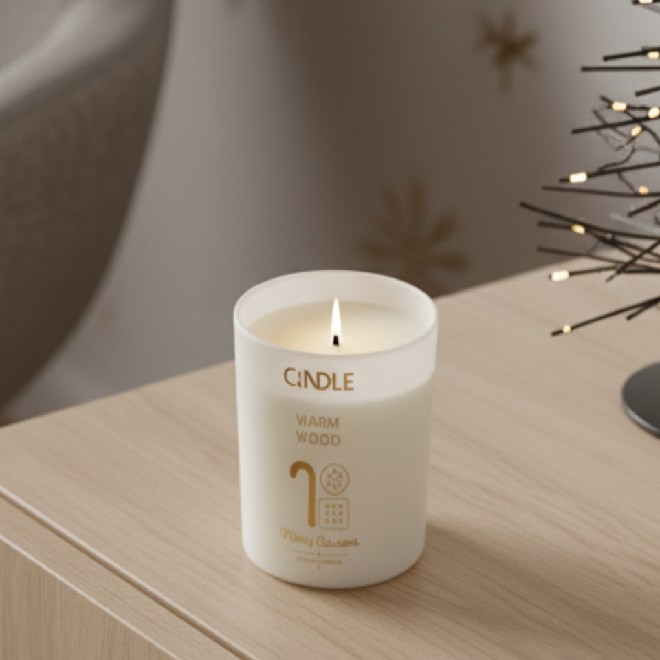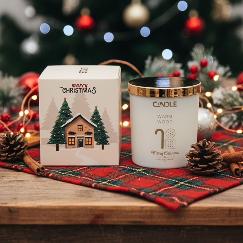 La Vela Navideña Warm Wood ✨ es el detalle perfecto para llenar tu hogar de calidez en estas fiestas. Con vaso de vidrio blanco esmerilado, tapa dorada y diseño navideño, combina estilo, aroma y luz suave para crear una atmósfera única.