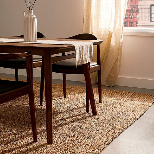 Nuestra alfombra de yute más imponente. Hecha a mano en yute natural con textura bucle, ideal para vestir grandes espacios con calidez y elegancia.