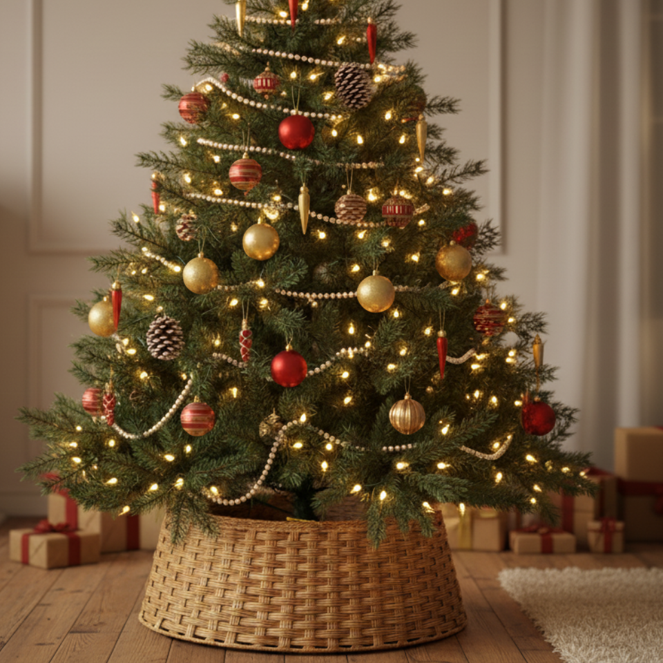 🏡 Ideal para: árboles de Navidad medianos o grandes. El Cubrepie Natural Tree transforma la base del árbol en un punto decorativo, creando una Navidad más natural, elegante y acogedora.