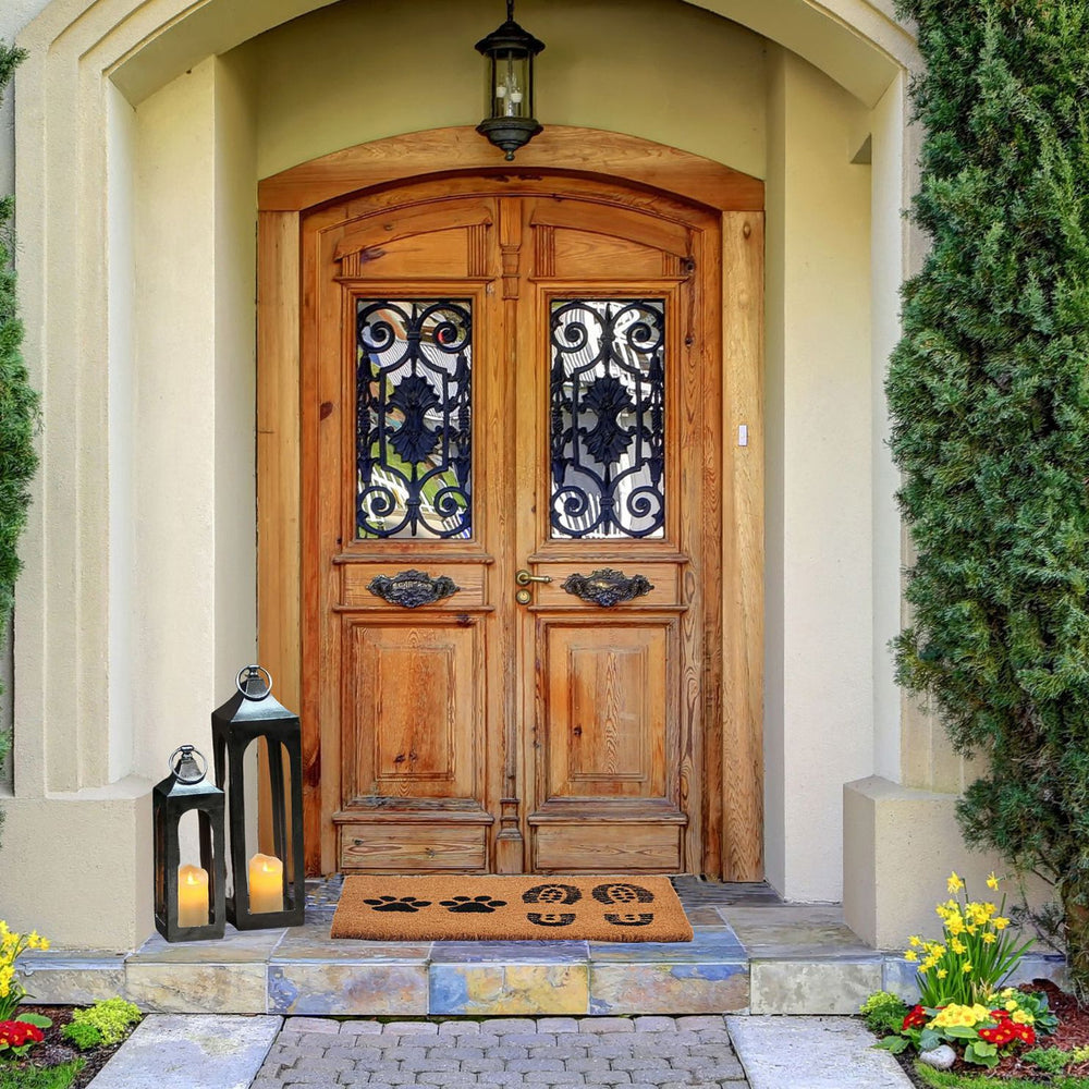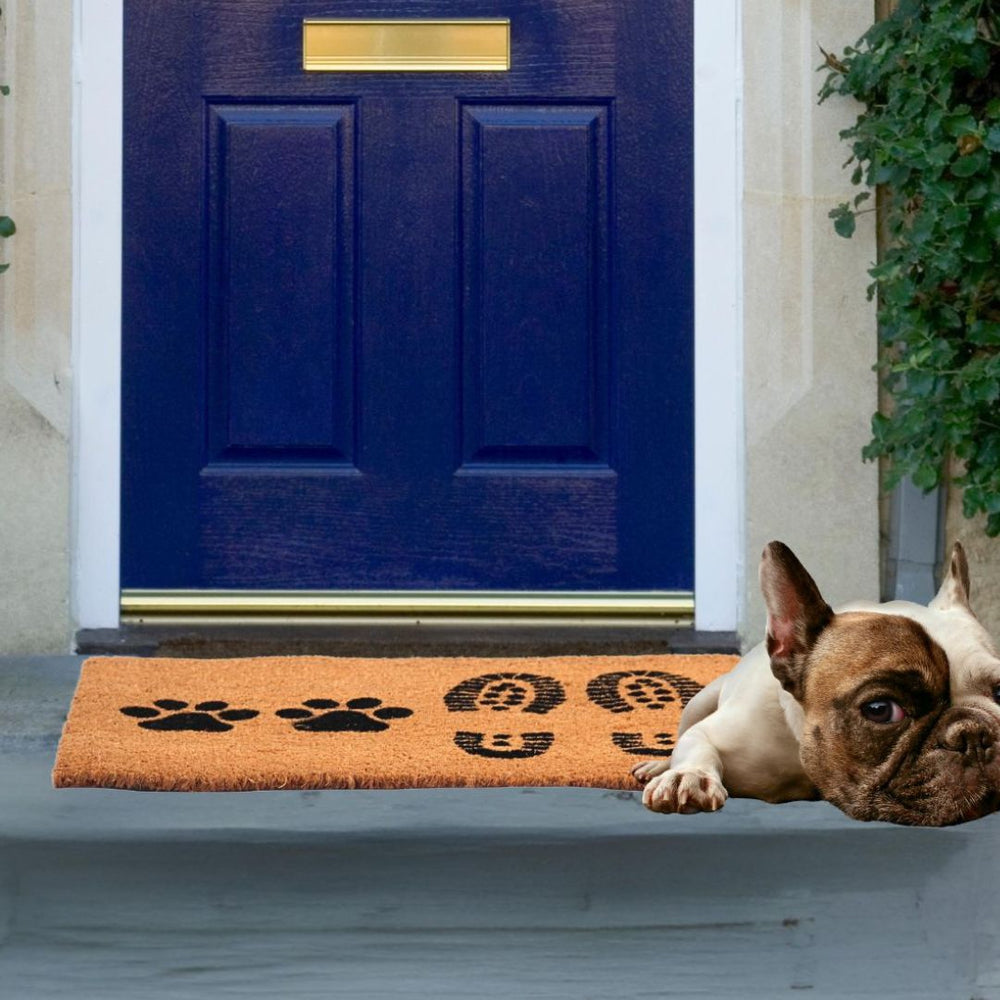 Su diseño original con huellas de zapatos y patitas de mascota es ideal para hogares pet friendly, aportando un toque simpático y práctico a la entrada.