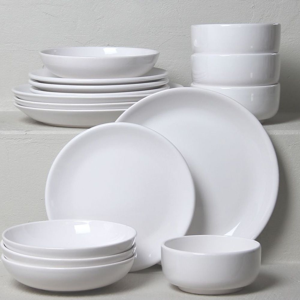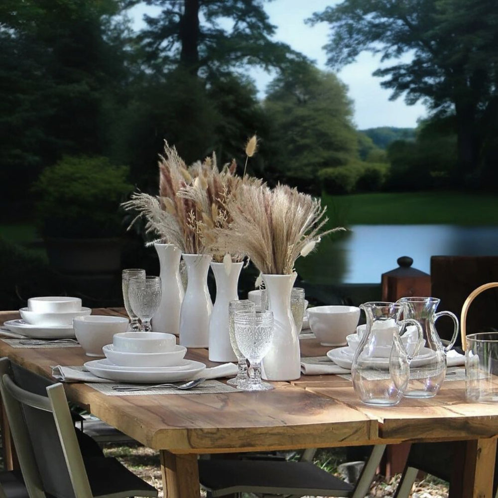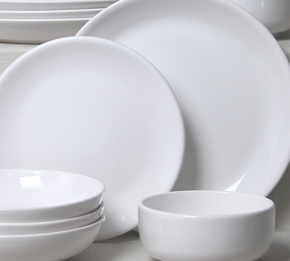 Una vajilla blanca, de líneas limpias y sin ornamentación. Perfecta para mesas prolijas, relajadas y con un toque de elegancia sutil.