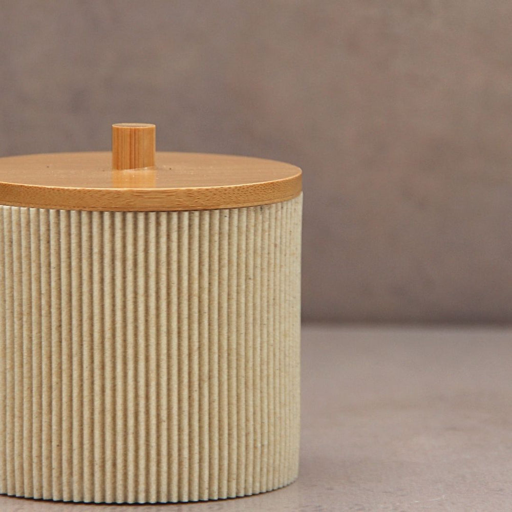 • La tapa de bambú aporta calidez y prolijidad visual