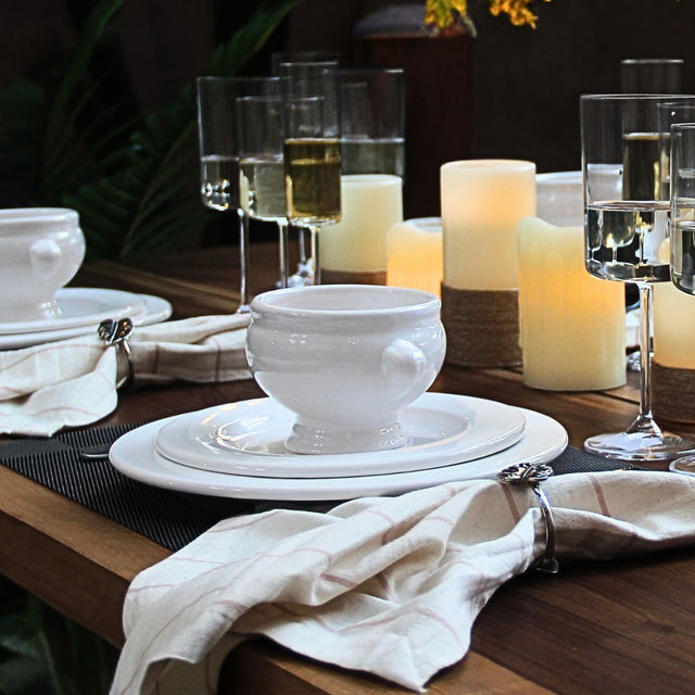 Su diseño clásico con asas lo convierte en un detalle distinguido en la mesa.