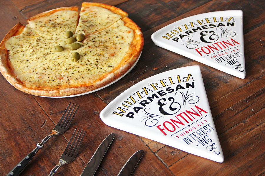Con diseño tipográfico enérgico y moderno que rinde homenaje a los clásicos del queso: mozzarella, parmesano y fontina. Ideal para los amantes de la pizza que también disfrutan de una buena estética en la mesa.