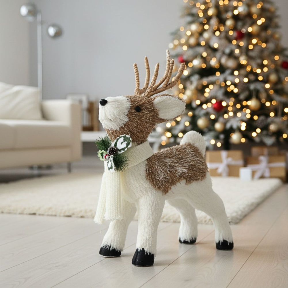 Combiná el Reno Joy 40 cm con las Ardillas Joy o el Reno Sentado Joy para lograr una ambientación natural y acogedora, ideal para recibir la Navidad con estilo.