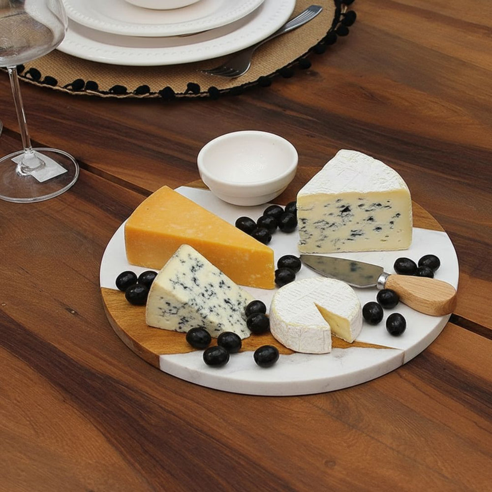 🤍 Tabla Mármol Blanco y Madera 25 cm · Estilo Natural y Moderno