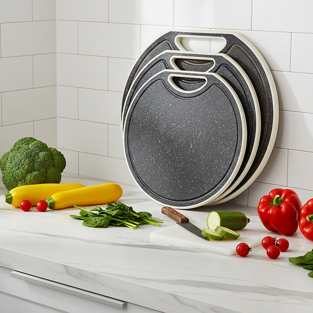 La Tabla de Corte de 32 cm ofrece el tamaño perfecto para el uso diario. Ideal para cortar carnes, verduras o panificados, combina resistencia, higiene y un look actual que se adapta a cocinas modernas.